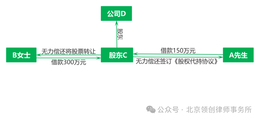 没有任何证据表明B女士知晓C先生代持的事情,将300万转给C先生后,C马上转给A先生80万元,用于偿还之前的欠款,进一步表明了B女士没有串通。